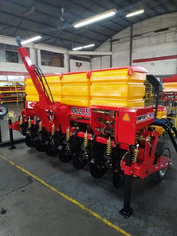 A plantadeira de milho 5 linhas é ideal para uso em plantações de milho, com capacidade de semear quatro fileiras com adubação e fertilização dos grãos, e outra fileira é deixada livre para germinação e produção. Esse equipamento possui automatização para ações da operação, melhorando os resultados de assentamento e aumento da produtividade do produto.